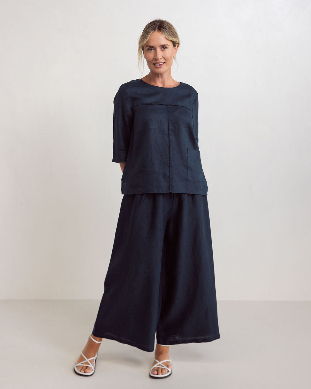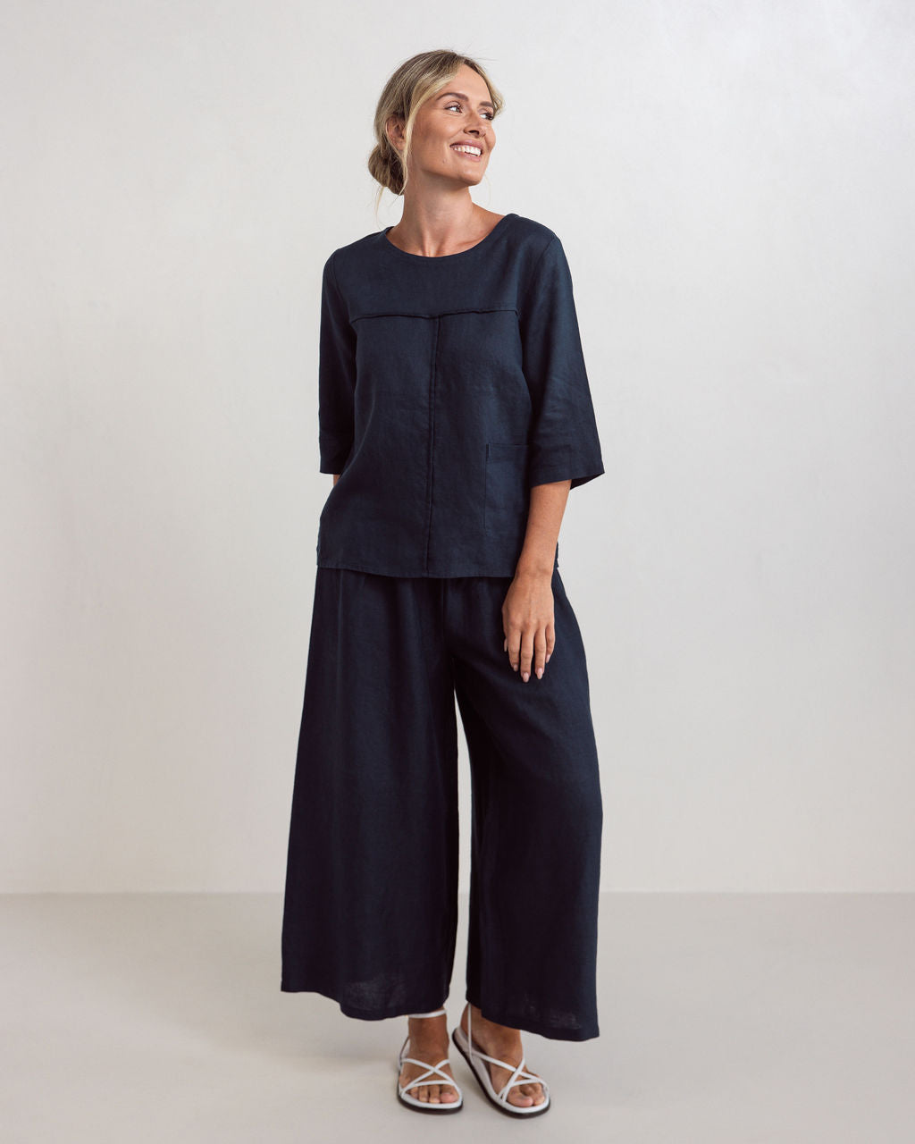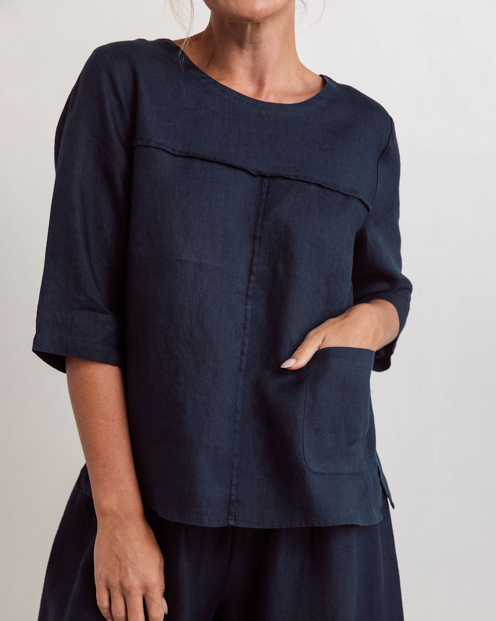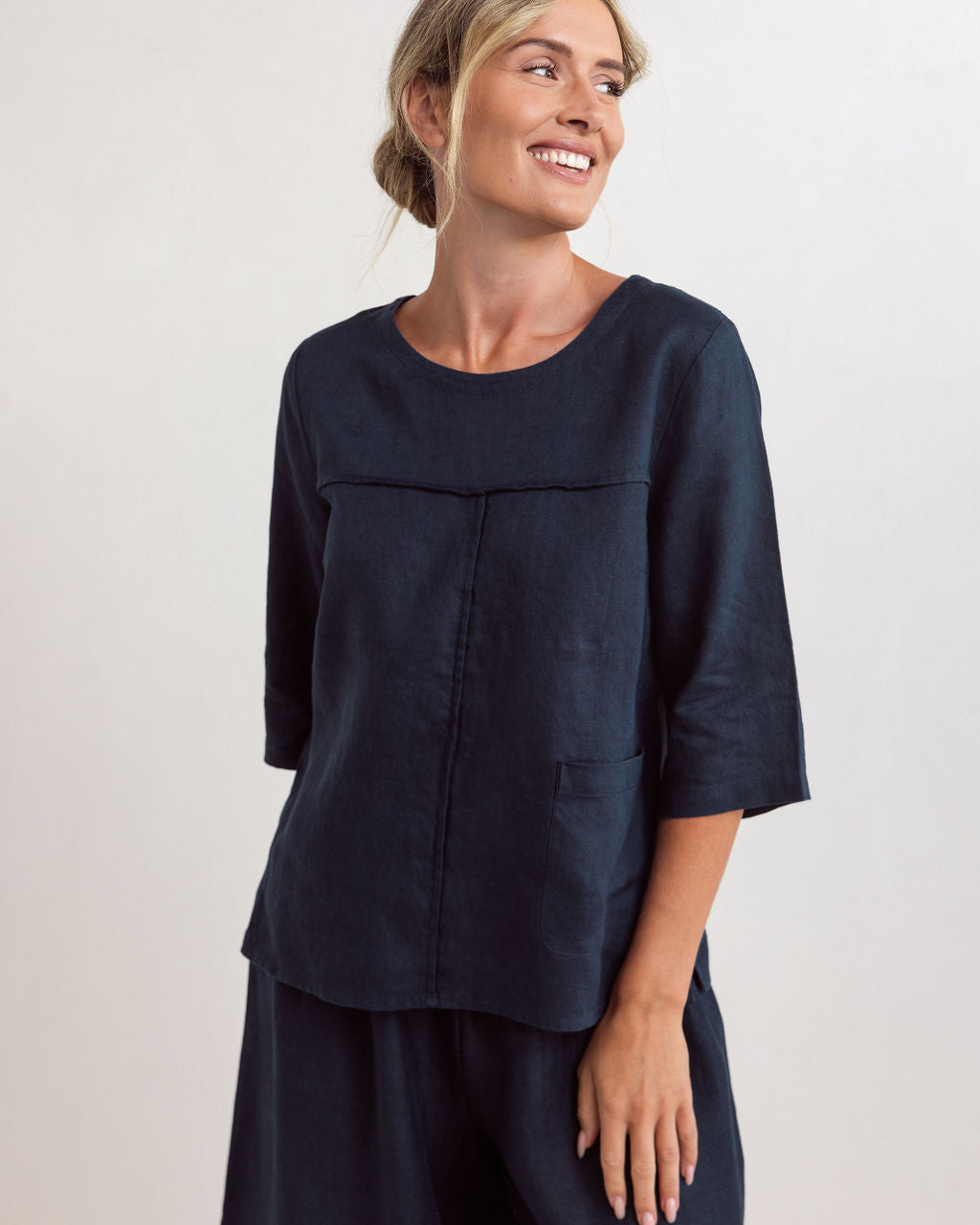 See Saw - 100% Linen 3/4 Sleeve Top SS327