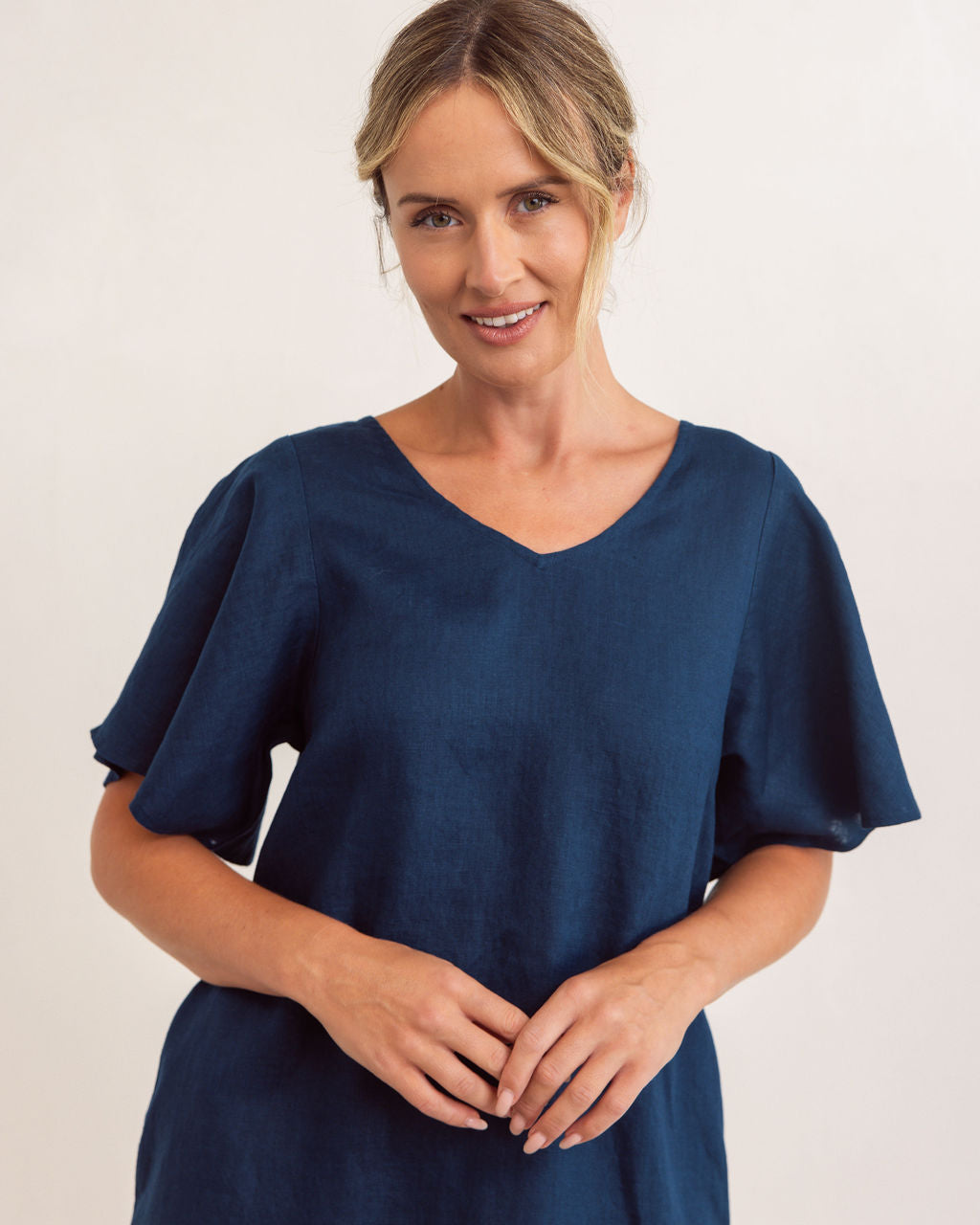 See Saw - 100% Linen V Nk Flutter SL Dress SS344