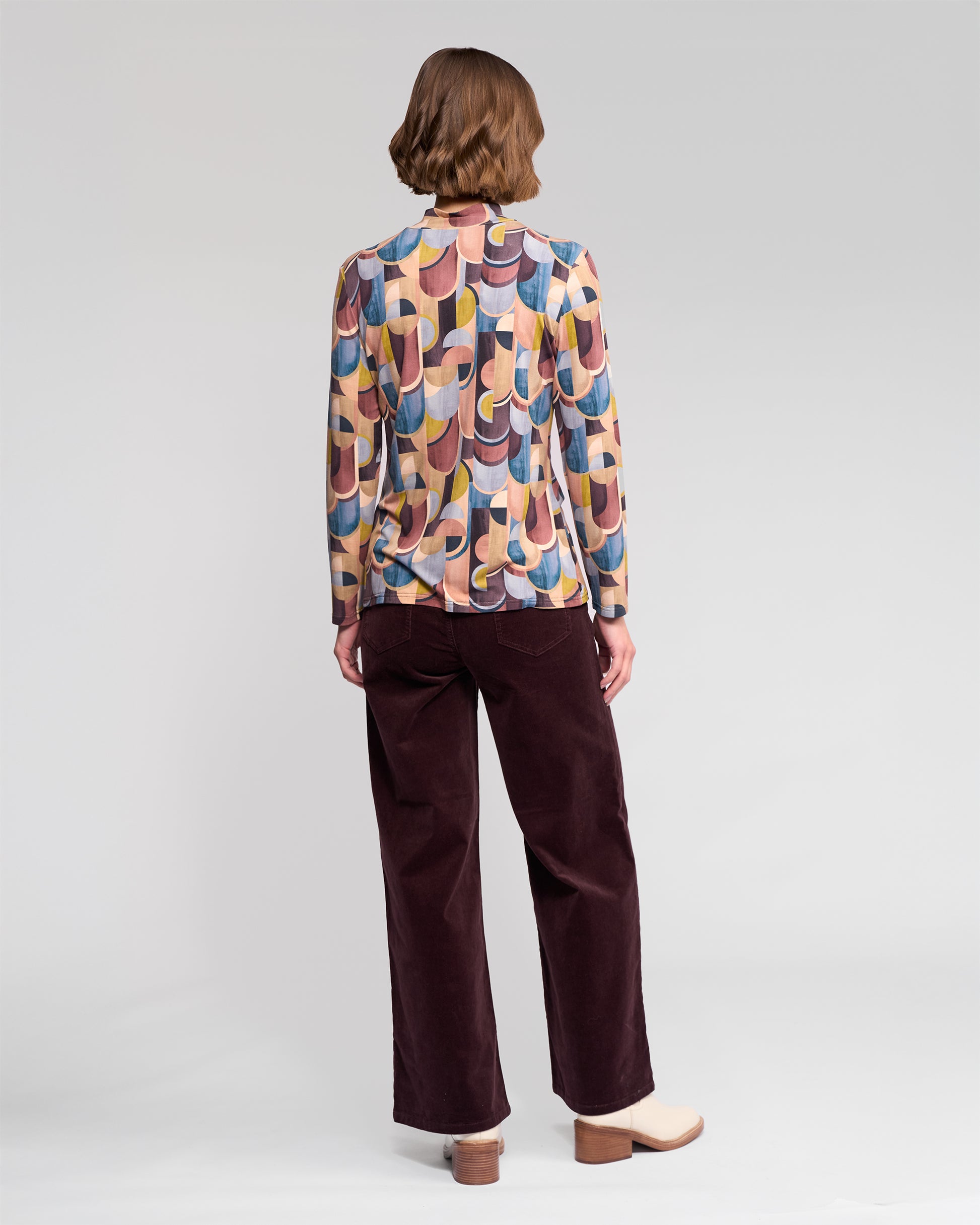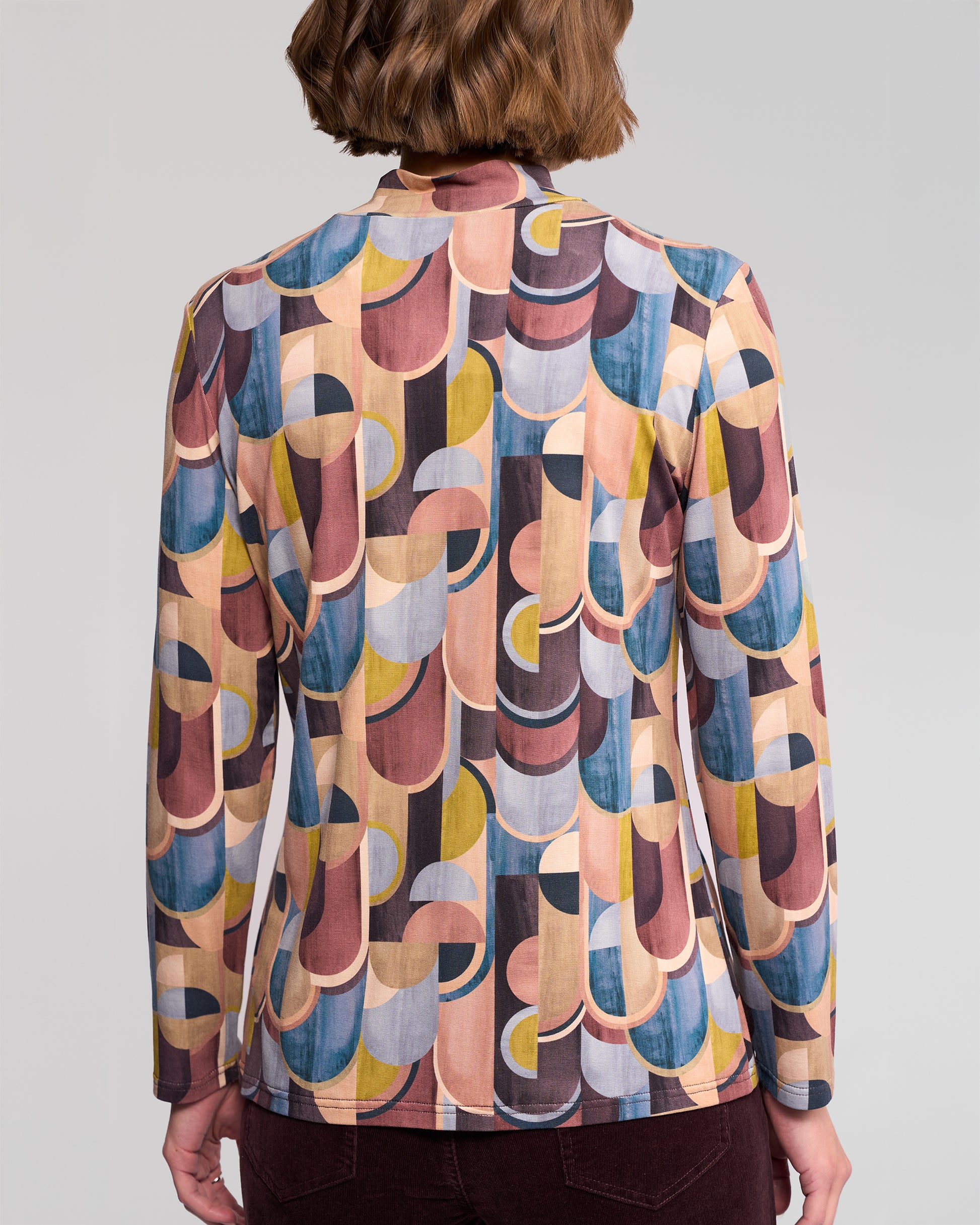 Add a touch of modern flair to your wardrobe with the Vassalli Long Sleeve High Neck Printed Knit Top. Featuring a striking geometric print in rich, contemporary tones, this top effortlessly elevates everyday styling.